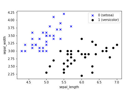 plt.scatter(inputs1[:,0], inputs1[:,1], marker='o', c='k', label='1 (versicolor)')